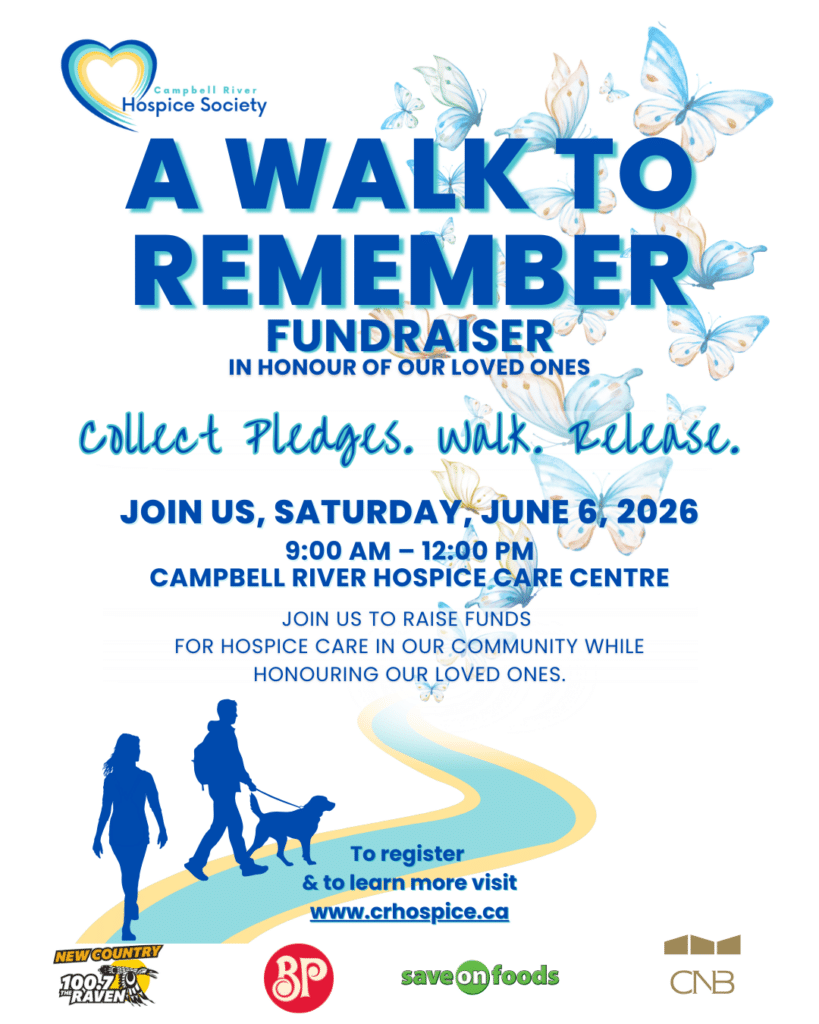 Join the Campbell River Hospice Society for our Walk to Remember on Saturday, June 6th, from 9:00–12:00 PM in the Serenity Garden (440 Evergreen Road)