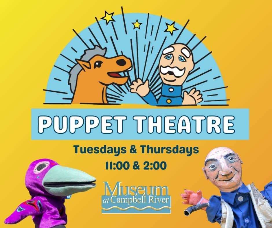 Museum at Campbell River 470 Island Highway, Campbell River, Vancouver Island, CanadaDuring July & August, our favourite characters from history come alive to tell the most outrageous, surprising, and fun stories of Campbell River and Northern Vancouver Island’s. These 20-minute puppet shows in our Van Isle Theatre introduce significant events, people, and a glimpse into what life was like in the past. Shows are aimed at children ages 3 to 6, so expect lots of sing-alongs and audience participation, but all ages are welcome. Each performance is followed by a themed craft.